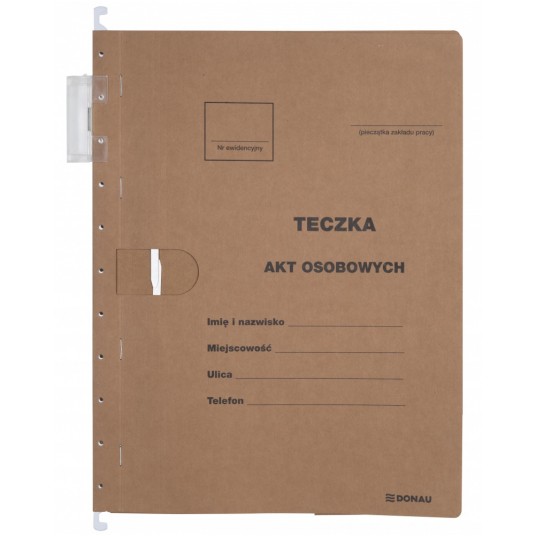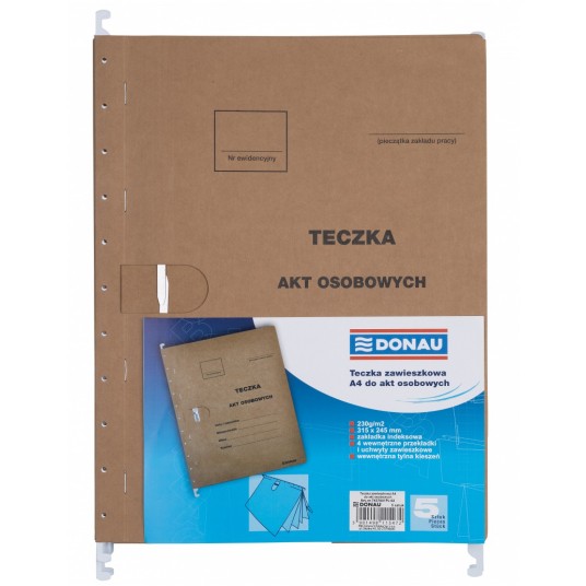 posiada 5 przegród, każda z metalowym wąsem skoroszytowym
