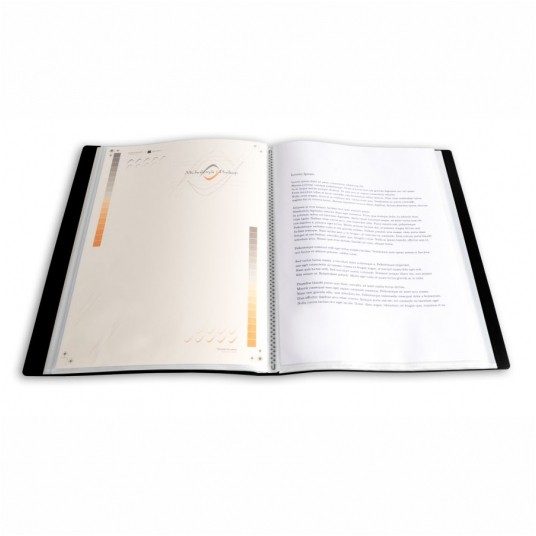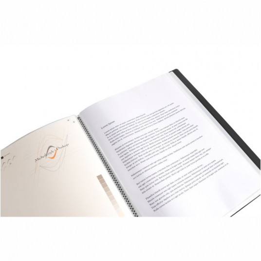 - Posiada grzbiet i kieszeń opisową na przedniej okładce, format A4