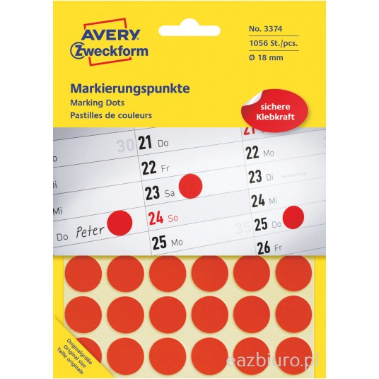 - Kolorowe, okrągłe etykiety w małych rozmiarach, do zaznaczania i organizowania