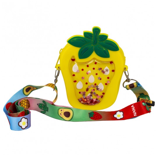 - Mała torebka na ramię w kształcie truskawki - Materiał: silikon - Posiada materiałową smycz - Wymiary: 9,5 x 12 x 3 cm - Dwa modele do wyboru - Jednostka sprzedaży: 1 sztuka