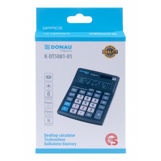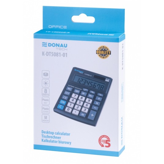 Kalkulator biurowy DONAU TECH OFFICE, CI-CMB801BK, 8-cyfr. wyświetlacz, wym. 137x101x30mm, czarny