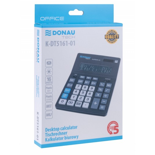 Kalkulator biurowy DONAU TECH OFFICE, CI-CDB1601BK, 16-cyfr. wyświetlacz, wym. 201x155x35mm, czarny