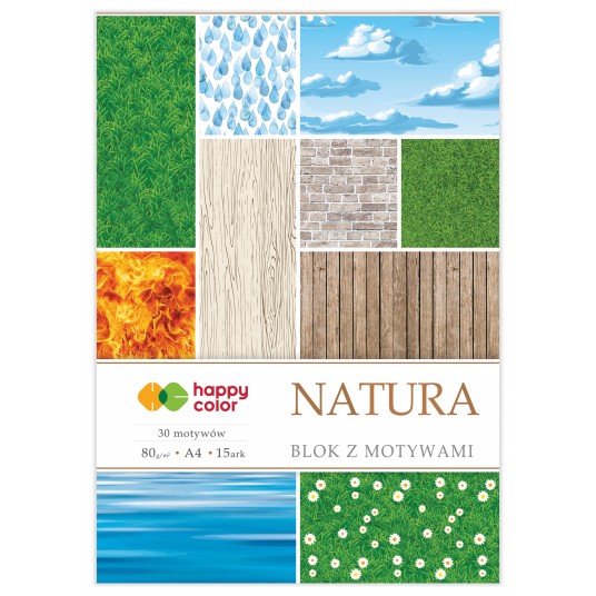 Blok z motywami nature, A4, 80g/m2, 15 arkuszy, 30 motywów, Happy Color