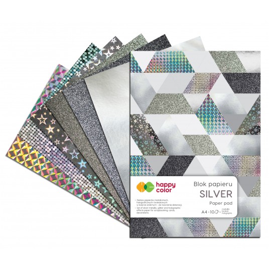 Blok silver A4, 150-230g/m2, 10 arkuszy, Happy Color