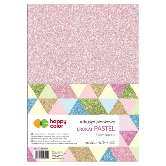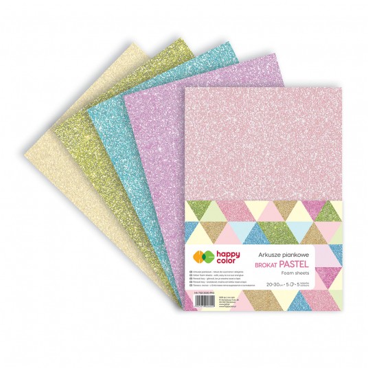 Arkusze piankowe brokatowe A4, 5 sztuk, pastelowy mix, Happy Color
