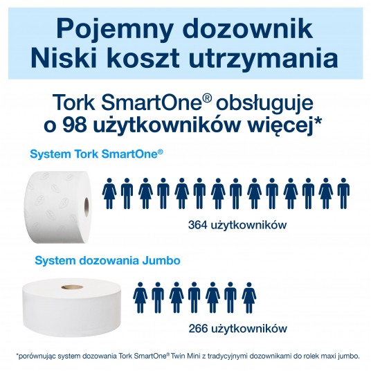 Podajnik na papier toaletowy w rolce Tork smartone®, biały t8, duża pojemność, seria elevation, 680000