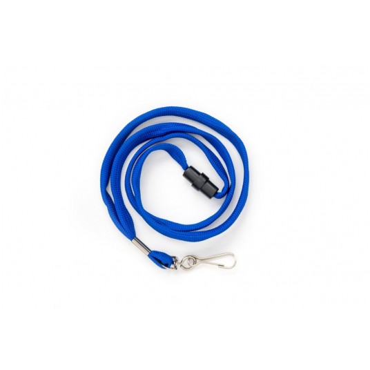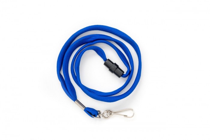 Taśma wypinająca z karabińczykiem w kolorze niebieskim. - szerokość taśmy 10 mm - zapięcie zabezpieczające, które rozpina się przy nagłym pociągnięciu - na końcu metalowy karabińczyk - pausje do wszystkich typów holderów i identyfikatorów