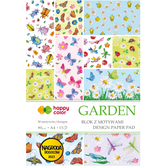 Blok z motywami garden, A4, 80g/m2, 15 arkuszy, 30 motywów, Happy Color