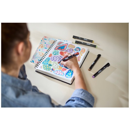 - Bezpieczny tusz na bazie wody nie przebija na drugą stronę kartki, prace będą będą więc wyglądać czysto i estetycznie