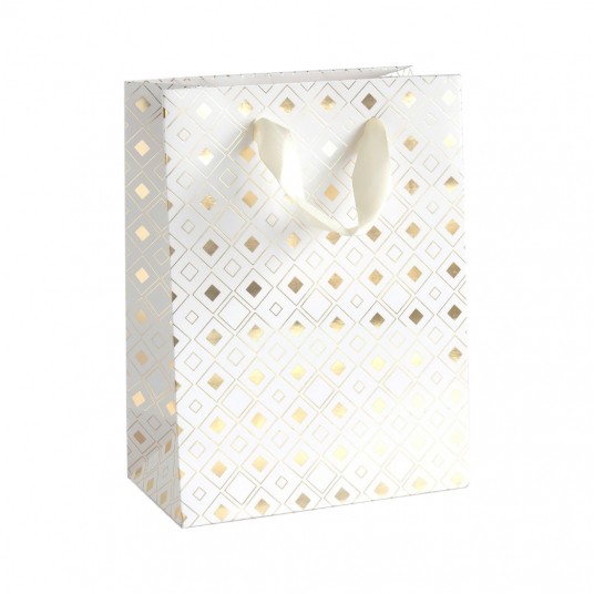 Torebka ozdobna biała złote romby "s" 5 szt.