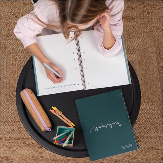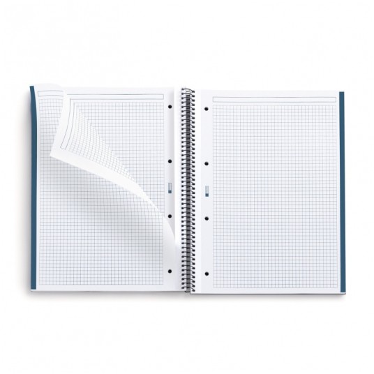 kołozeszyt, format A4, w kratkę okładka: 100% karton z recyklingu papier wyprodukowany z poszanowaniem najbardziej wymagających certyfikatów środowiskowych: FSC, Blue Angel i EU Ecolabel kartki z mikroperforacją i dziurkowaniem (4 otwory) ilość kartek: 80 gramatura kartek: 80g/m2 kolor: ekomorski