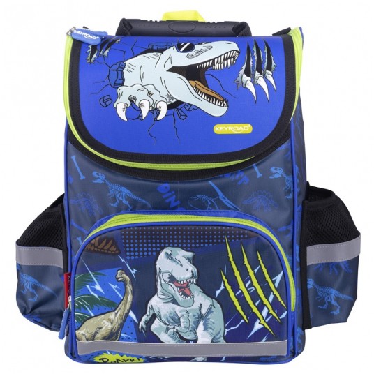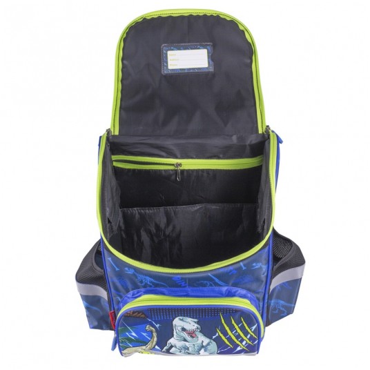 niezwykle lekki tornister szkolny, który jest dostosowany do wieku i masy dziecka, co sprawia, że nie obciąża dodatkowo kręgosłupa i stawów odpowiedni dla uczniów klas I-II profilowana i usztywniona konstrukcja wpływa na utrzymanie prawidłowej postawy ciała wbudowane kanały wentylacyjne zapewniają odpowiedni przepływ powietrza, dzięki czemu tornister nie przegrzewa pleców dziecka szerokie i miękkie szelki z możliwością regulacji długości, zwiększają komfort, nie obciążają ramion i umożliwiają dostosowanie tornistra do wzrostu dziecka z pasem piersiowym, łączącym szelki, który zapobiega zsuwaniu się z ramion oraz odciąża plecy dodatkowy panel stabilizujący chroniący odcinek lędźwiowy gumowa rączka i uchwyty zamków ułatwiają wygodne i komfortowe chwytanie wyposażony w funkcjonalną komorę główną z dodatkową przegrodą, ułatwiającą organizację i szybki dostęp do potrzebnych rzeczy posiada dodatkową zewnętrzną kieszeń zamykaną na suwak oraz dwie boczne, elastyczne kieszenie zewnętrzne na napoje lub inne drobiazgi wymiary: 38x28x18 cm wzór: dino