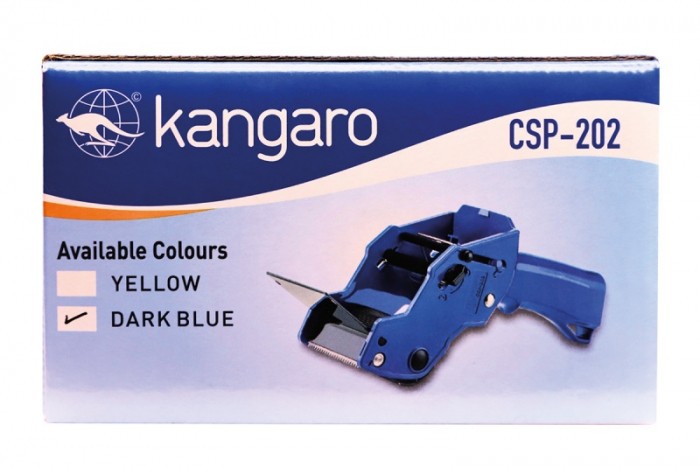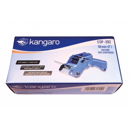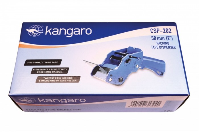 dyspenser do taśm pakowych o szerokości do 50 mm wykonany z odpornego na uszkodzenia mechaniczne tworzywa ABS ergonomiczny uchwyt ostrze ze stali nierdzewnej do łatwego odcinania taśmy rolka zapewniająca płynne podawanie taśmy dwukierunkowe, łatwe blokowanie kolor: żółty