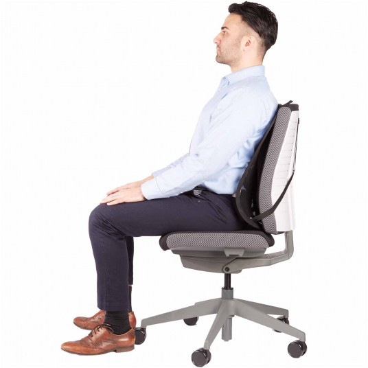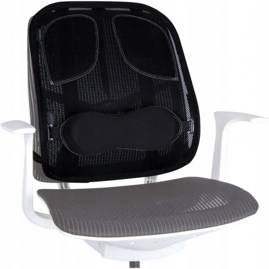 - Specjalne podparcie wykonane z pianki pamięciowej wspiera odcinek lędźwiowy, możliwość regulacji wysokości ułatwia dopasowanie do potrzeb danego użytkownika