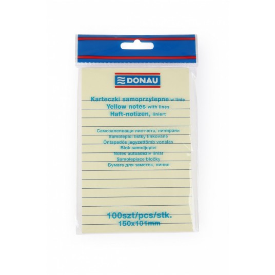- Substancja klejąca na bazie wody - Karteczki w żółtym kolorze z nadrukowanymi liniami - Idealne do przekywania wiadomości - Ilość karteczek: 100 - Gramatura: 75g/m2 - Klej umieszczony wzdłuż krótkiego boku - Wymiary: 150x101mm