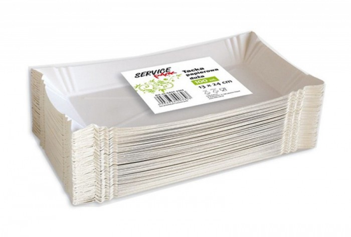 - Służy w gastronomii jako tacka, na której można podawać ciasta, torty i inne produkty- Może służyć także do podawania potraw z grilla- Wymiary: 14 x 24 cm- Opakowanie zawiera 100 sztuk