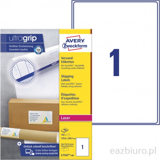 Białe etykiety wysyłkowe Avery Zweckform; A4, 100 ark./op., 199,6 x 289,1 mm