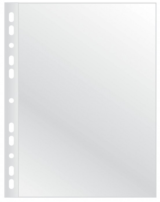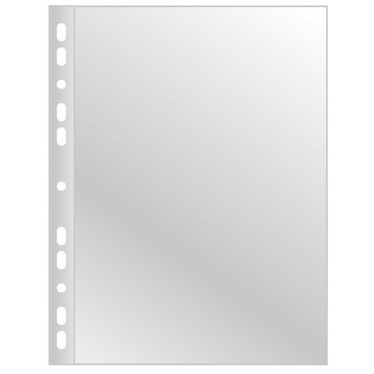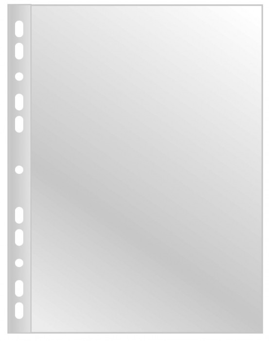 - Wysokiej jakości koszulki wykonane z gładkiej folii polipropylenowej o grubości 100µm - Krystaliczne, transparentne - Rozcięte na górze - Antyelektrostatyczne - Odpowiednie do dokumentów w formacie A4 - Ilość dziurek do wpięcia: 11 - Rozmiar: 232x304mm - 100 sztuk w j.s. - Kolor transparentny