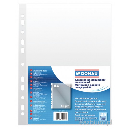 Koszulki na dokumenty Donau pp, A4 groszkowe, 40 mic, 25 sztuk