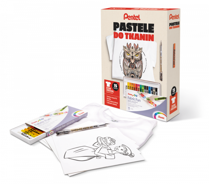 Pastele do tkanin Pentel pts zestaw z koszulką