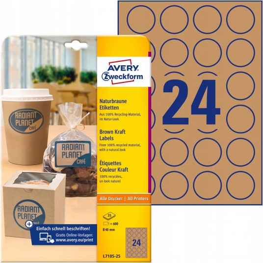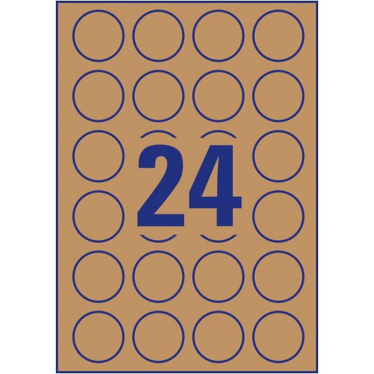 Brązowe etykiety na produkty Avery Zweckform, A4, 25 ark./op., o40 mm, okrągłe