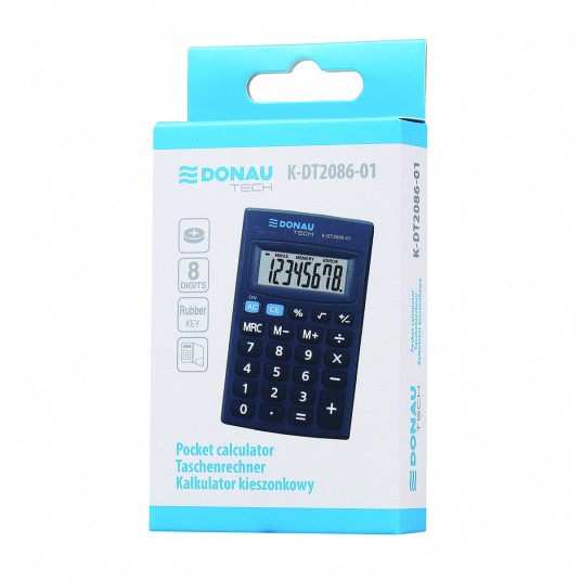 - kalkulator kieszonkowy z 8-cyfrowym wyświetlaczem z zasilaniem bateryjnym