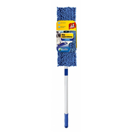 - Mop płaski wykonany jest z grubych frędzli mikrofibry, dzięki czemu chłonie trzykrotnie więcej brudu i wody niż mop z bawełny