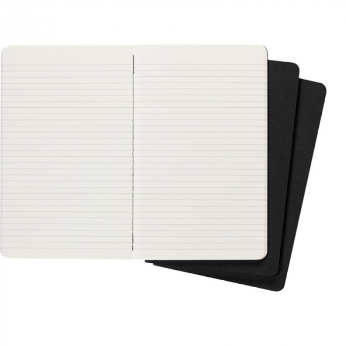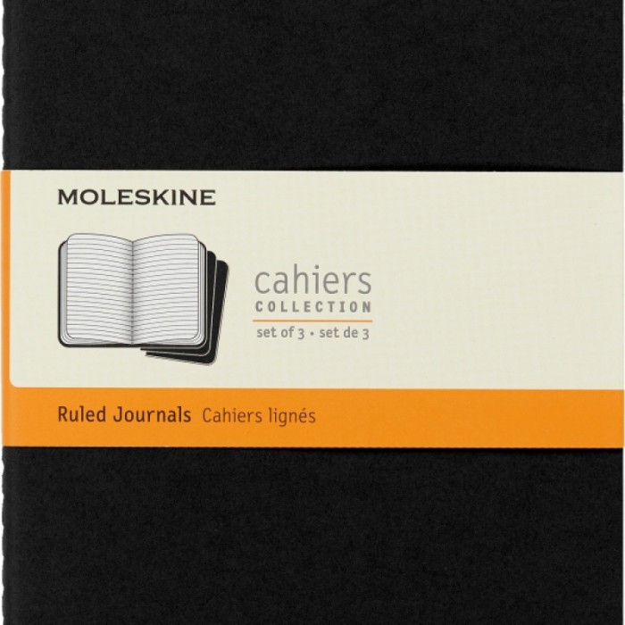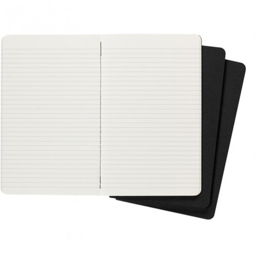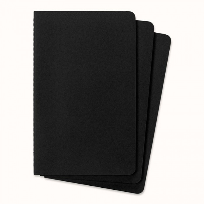 Zestaw 3 Zeszytów Moleskine Cahier Journals L (13x21cm) w linie, czarny, 80 stron Notatniki CAHIER Zestaw trzech notatników oprawionych w tekturową okładkę, po to by móc samemu stworzyć własną unikatową oprawę. Przeszyty grzbiet gwarantuje trwałość. Sprzedawane w zestawach po 3 szt. Do produkcji został użyty standardowy bezkwasowy papier certyfikowany FSC® w kolorze kości słoniowej. Zrobiony z barwionej masy, doskonale nadaje się do zapisywania notatek długopisem oraz ołówkiem. FUNKCJE tekturowa okładka zaokrąglone rogi widoczne przeszycia na grzbiecie kieszonka na okładce z miejscem na zbieranie luźnych kartek papier o gramaturze 70 g/m2 i kolorze kości słoniowej ostatnie 16 kartek perforowanych pakowane w zestawy po 3 sztuki ROZMIAR L 13 × 21 cm 80 stron UKŁAD: linia