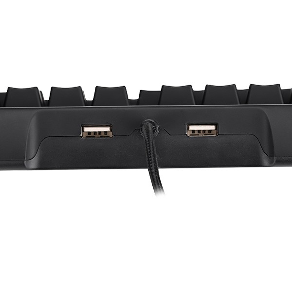 - Z tyłu klawiatury znajdują się 2 wyjścia USB obok kabla zasilającego