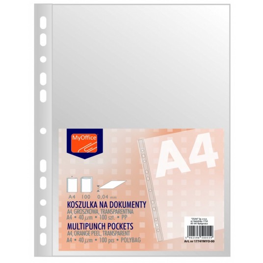 Koszulka na dokumenty my-office, A4/100 szt. pp groszkowa bezbarwna, 40 mikr.