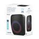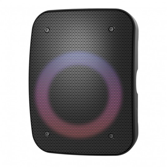 Membrana głośnika pokryta jest wielokolorowym oświetleniem LED, które dostosowuje się do odtwarzanej muzyki.