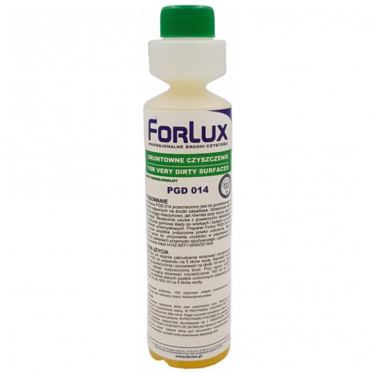 - Preparat Forlux PGD 014 przeznaczony jest do gruntownego mycia powierzchni maszyna szorującą, odpornych na środki zasadowe.