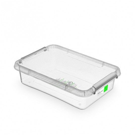 - Antibacterial jest pojemnikiem antybakteryjnym. W całym pojemniku oraz klipsach i rączkach umieszczone zostały mikrocząstki srebra. Dzięki temu, zamykany pojemnik jest bardziej bezpieczny dla zdrowia oraz pomaga zachować świeżość i czystość jego zawartości - Mikrosrebro zabija ponad 99% bakterii i grzybów - Pojemość: 6 l - Wymiary: 400 x 300 x 80 mm - Kolor: transparentny