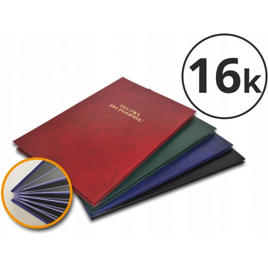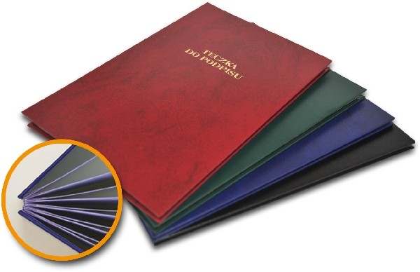 - Teczki wykonane z tektury litej, pokrytej skóropodobnym tworzywem - Grzbiet wykonany harmonijkowo - Kartki wewnętrzne kartonowe białe z dziurkami w celu pokazania zawartości teczki