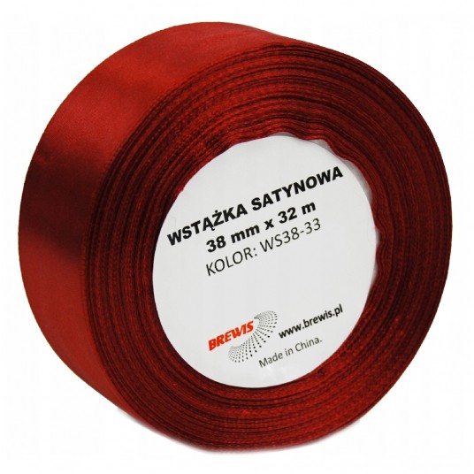 Wstążka satynowa Brewis 38 mm bordowa